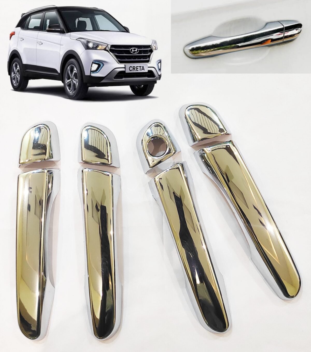 Give your Hyundai Creta 2015-2019 a luxurious makeover with our Chrome Door Handle Catch Covers – Set of 8pcs. Designed with precision, these accessories not only enhance the visual appeal of your car but also protect the door handle catch area from scratches, dirt, and daily wear.