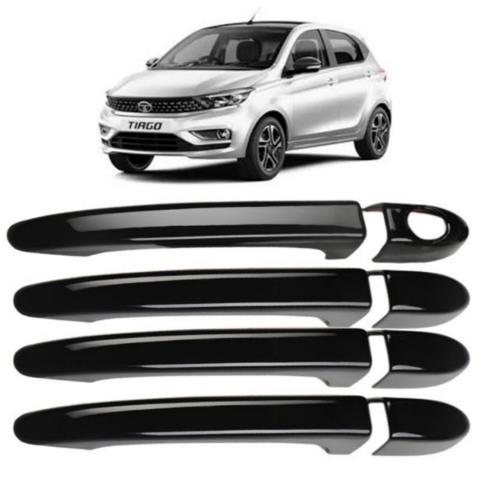 Upgrade your Tata Tiago with these premium Piano Black door handle covers. Designed for a flawless fit, they instantly add a sporty, high-end look to your car while protecting your original handles from scratches.