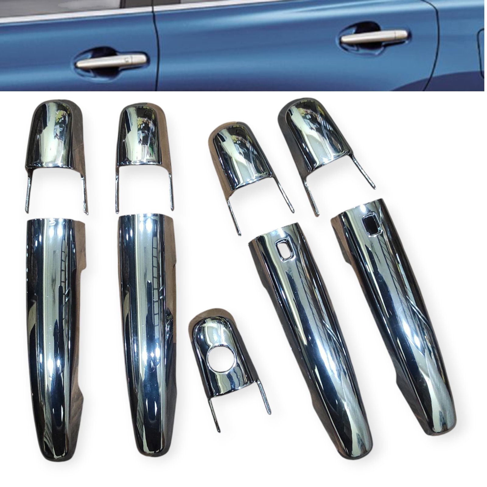 Crafted from high-quality ABS plastic and finished with mirror silver chrome, this set enhances your car’s elegance while protecting handles from scratches, fading, and UV damage.