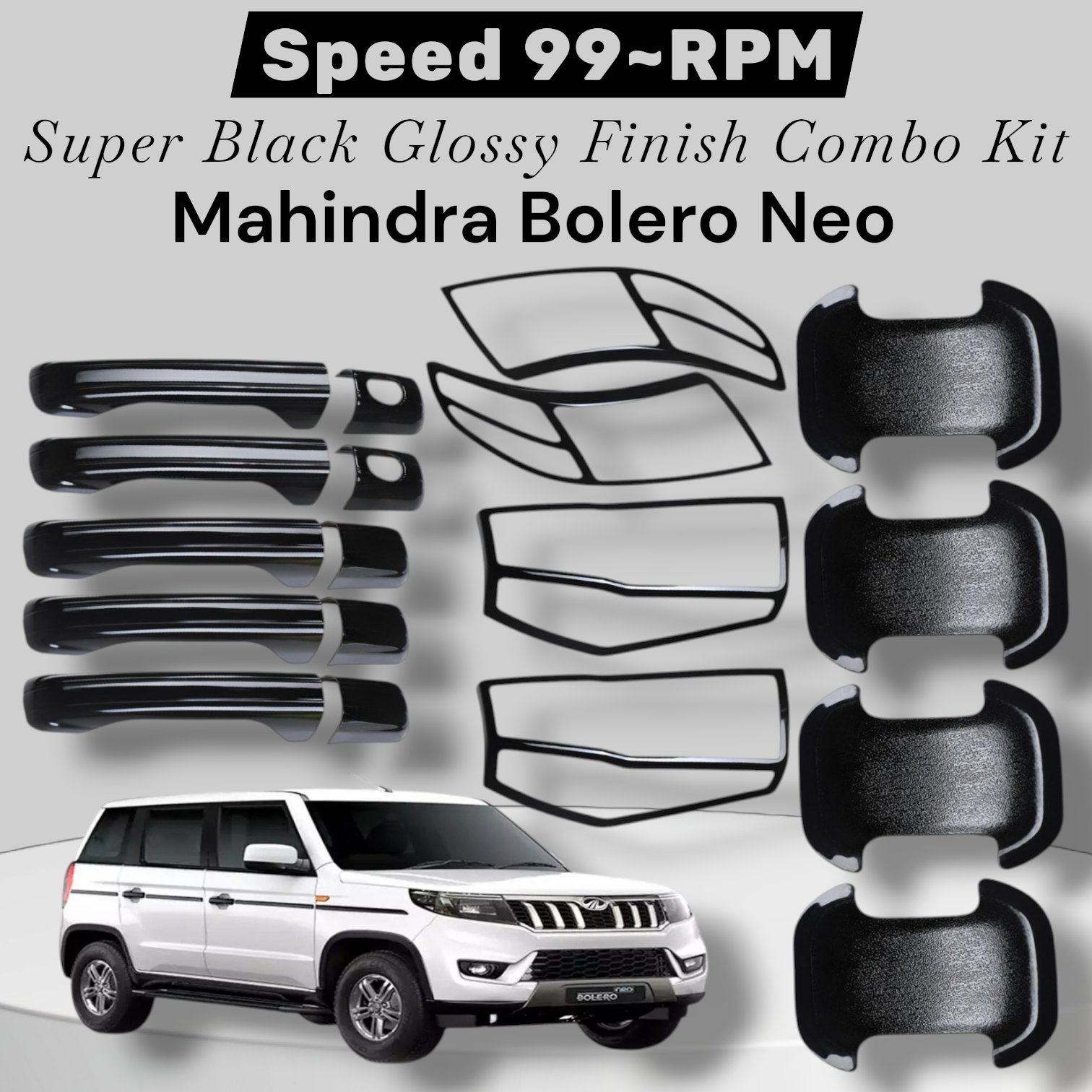 Give your Mahindra Bolero Neo a bold, stylish, and premium upgrade with the Super Black Combo Smart Kit. This set of 5 exterior premium accessories – a total of 20 carefully crafted pieces – combines the elegance of piano black and the rugged appeal of matte black, offering a perfect fusion of luxury and durability. Designed specifically for the Bolero Neo, these accessories ensure a perfect fit and an instant enhancement to your SUV’s appearance.