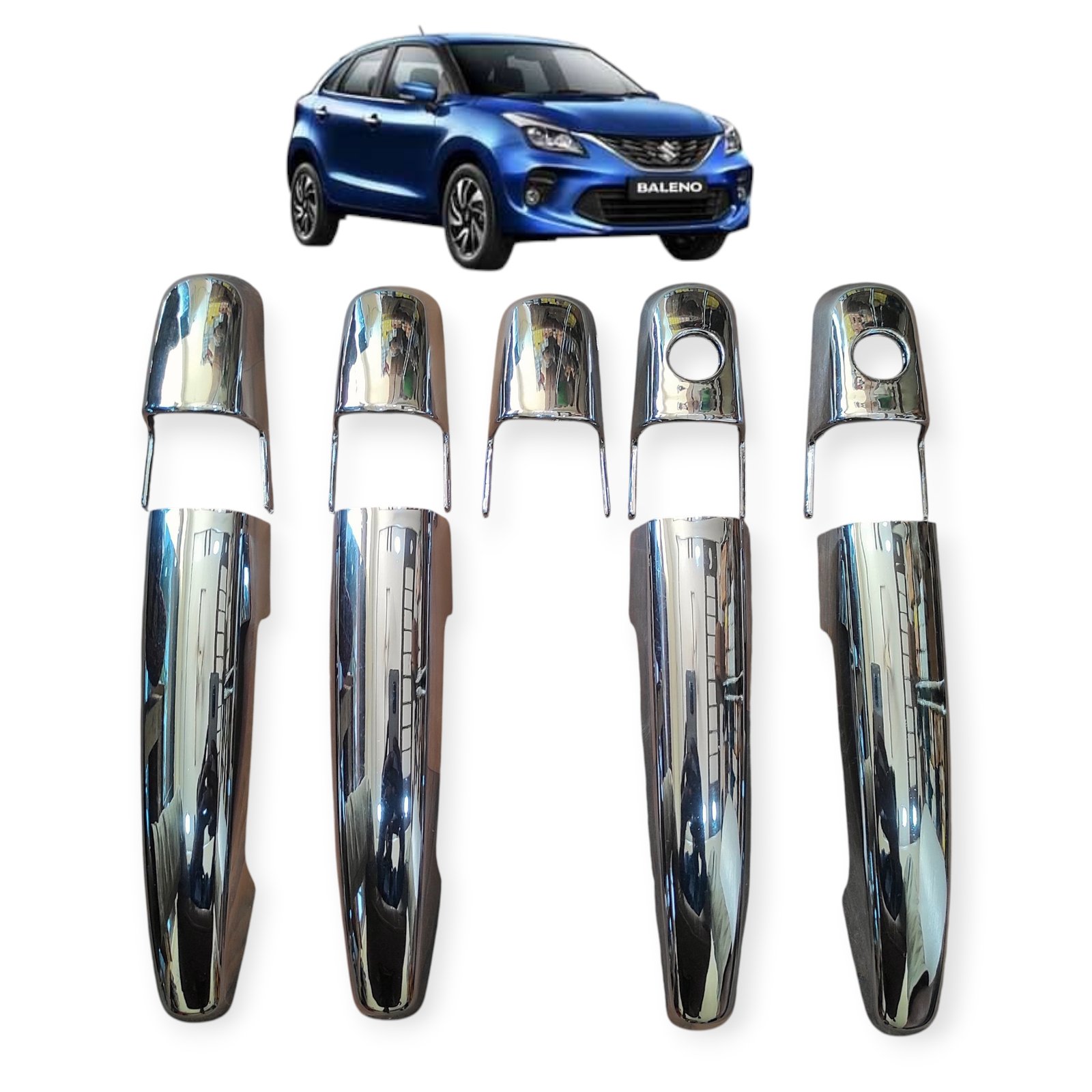 Premium Door Handle Chrome Trim for Baleno 2015-22 – Key Type (Set of 9pcs) Exterior