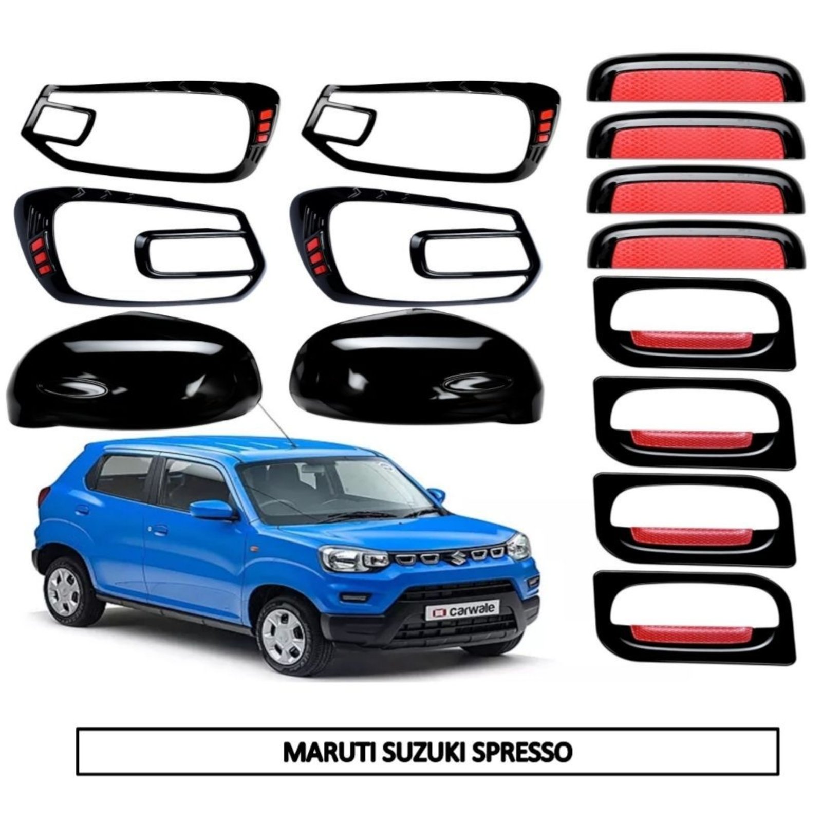 Transform your Maruti Suzuki SPresso into a true head-turner with the Dual Tone Red & Black Combo Kit a bold blend of Matte & Piano Finishes that gives your car a unique and aggressive styling edge. This 14-piece premium exterior accessory kit has been specially designed for the S-Presso to enhance both the aesthetic appeal and protective function of your vehicle.