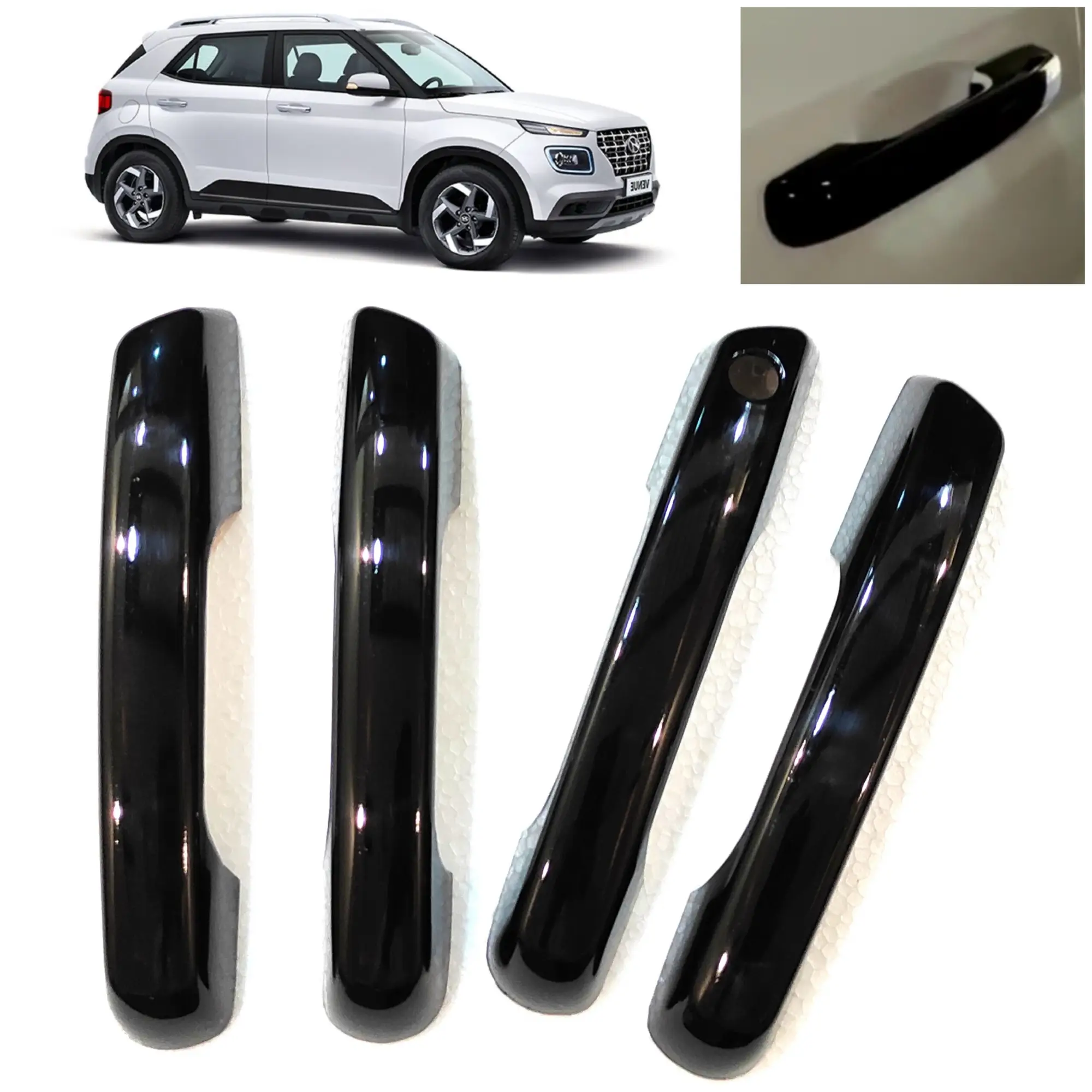 Upgrade your Hyundai Venue 2019+ exterior with a touch of sleek sophistication using the Piano Black Door Handle Catch Covers from Speed 99~RPM. Specially crafted for Hyundai Venue models from 2019 onwards, this set of 4 pieces is designed to enhance your car’s premium feel while offering solid protection against everyday wear and tear.